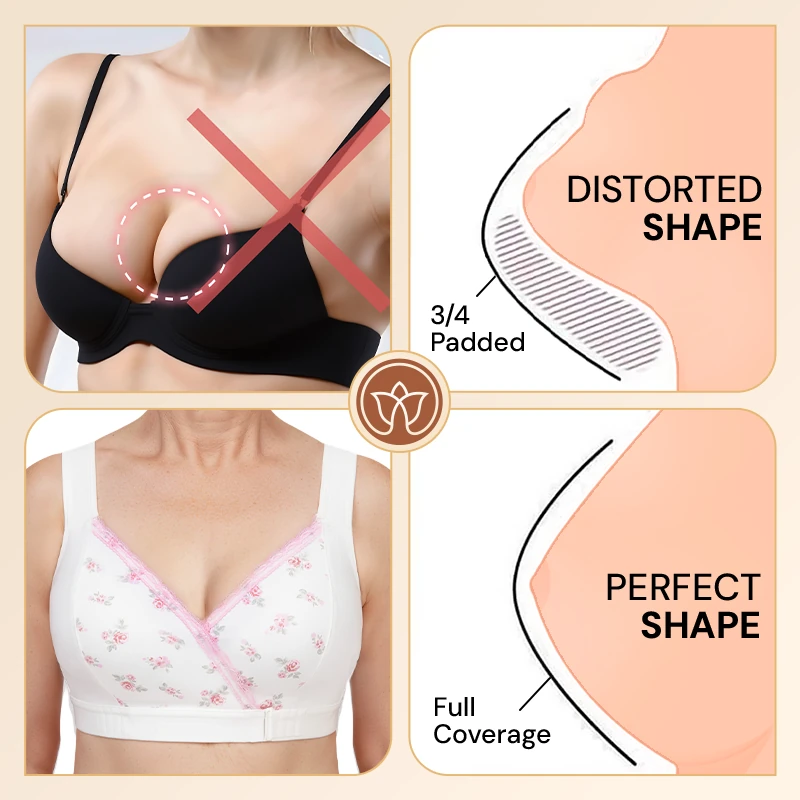 Designed with seniors in mind, the Fiona Bra features an innovative front-wrap closure, making it incredibly easy to put on and take off in less than 5 seconds. Say goodbye to struggling with back hooks or straining muscles on tiny buttons; its unique wrap-it-up system gently supports and shapes for a fuller bust with minimal effort.